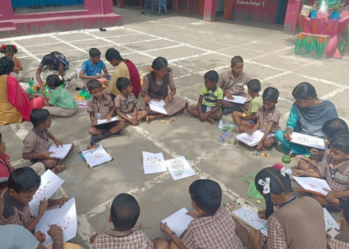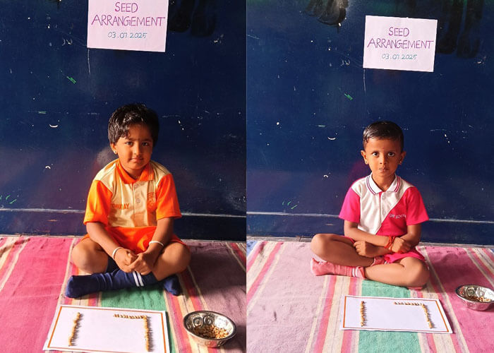 Kriyakalap activities facilitate the refinement of a child sensory perception, enabling them to engage with comprehend their environment through meaningful experiences. These activities are designed to enhance the development of the child senses.